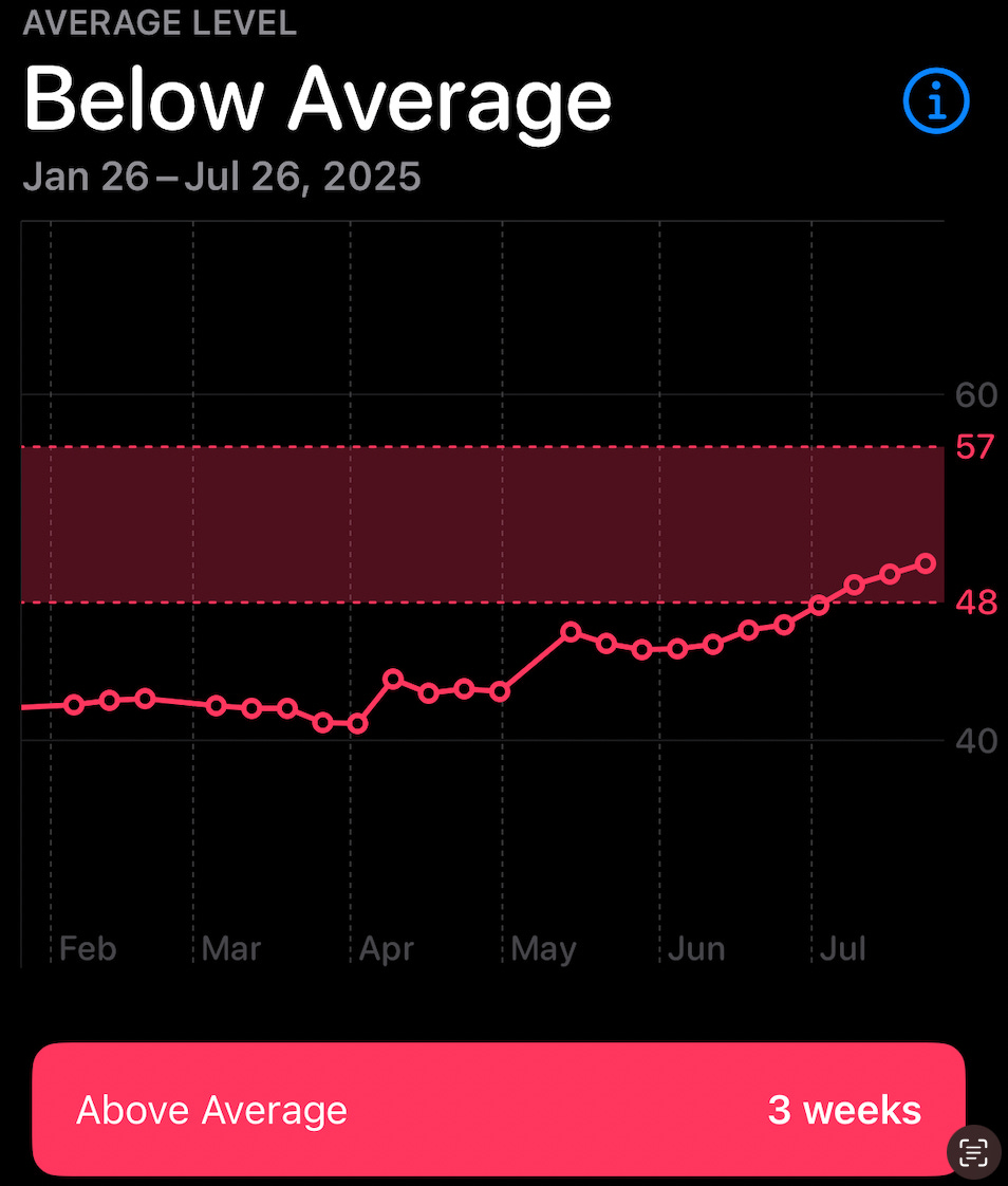 I’m happy to say, through the challenge, I’ve walked over 179 miles and also lifted just under 133k lbs so far with pretty insane growth in both capabilities. My VO2 max has also increased greatly so I’d highly highly recommend walks as an alternative to running if you’re just trying to get a little more in shape : )